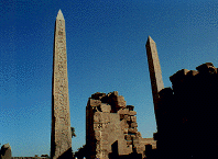 トトメス1世とその娘のハトシェプスト王女のオベリスクが2本立っている。実際はハトシェプスト女王のオベリスク(右)のほうが大きい。少し進むと、横たわるハトシェプスト女王のオベリスクがある。トトメス1世が死んだ時、第一夫人の娘 当時20才のハトシェプストを女王にしました。第2夫人の息子が6才だったため、王位にはつけず、ずっとハトシェプスト女王を恨んでいたので、姉さんを殺して自分が即位した時に、オベリスクを倒したのだ。どうやって倒したかというと、火で焼いて、その後水をかけてオベリスクを割ったのだそう。