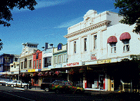 ネルソンは小さな街です。ショッピング街の通りの天井には、植木がつるされているのですが、6時なると、自動的に水を流しているみたい。頭上注意です。