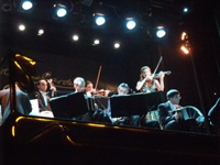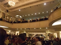 8時すぎにマイクロバスがホテルにピックアップに来てくれた。そして、いろんなホテルをまわり、9時にお店に到着した。お店の横には数台のバスが止まっていた。観光客がいっせいに大挙しているようだ。そして、席に案内された。会場は300〜400席くらいかなあ。端っこながら、1番前の席!!ラッキー。お洒落な格好の人もいますが、ジーンズの人もいて、服装はあまり気にしなくてもいいみたいでした。席に着くと、さっそくメニューを渡され、注文をしないといけないのですが、めちゃくちゃ急かされました。メインを選んでいるときに、もう前菜がきました。味はまあまあです。Mちゃんはお肉を頼んだけど、今回の旅行で一番美味しかったんではないかな。10時30分にショーが開始しました。10人くらいの編成による生演奏があり、