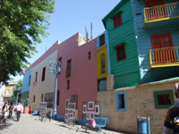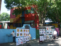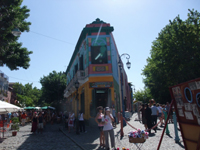ホテルのフロントにボカ地区にバスで行く方法を聞いたら、「鞄はちゃんと前に持って、押さえて行きなさい」とアドバイスを受けました。やっぱり危ないんだー。ホテル近くのバス停から152番のバス(20分ほど)に乗り、ボカ地区に行きました。バス代0.9アルゼンチンペソ(約25円)は安いですね。ここはブエノスアイレスの中でも、特に行きたかったところ、カラフルなペンキを縫った家屋が並んでいるカミニートがかわいかった。オープンカフェでは、タンゴを踊っていて、ここで食事しながら、タンゴを見るのも悪くないですね。このメインのところから外れなければ、危なくなさそうでした。