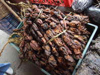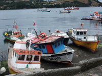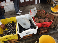 その後、Dalcahueの海岸通りを散策しました。ガイドさん曰く、ここは危ないところで、デジカメを盗まれたお客さんもいたとか・・・。普通の田舎の港町に見えるんですが・・・。店先でムール貝やウニが売られてました。
