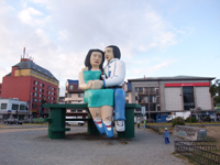 静かな街でした。観光地というより、普通の街でした。大きなショッピングセンターもあり、中にはファストフード店が並んだフードコートもある普通の街だった。特に街の中に見どころはない。海岸通りにある巨大カップルの像が一番、目に留まった。この像の真ん中に人が乗っかっているのがわかりますか?