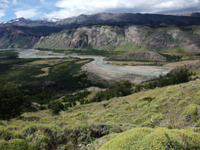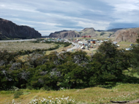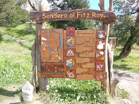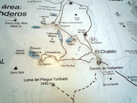 7:30発のバス。結局7:40発になった。大地と湖ぐらいしか見えない道をバスは進んだ。対向車も少ない。エル・チャルテンに近づくと、フィッツ・ロイが見えてきた。正面にフィッツ・ロイが見えるので、バスはできるだけ前に座るほうがいいだろう。エル・チャルテンの街の手前の公園管理事務所に着いたのは、10:30。全員バスから降ろされ、英語とスペイン語の部屋に分かれて、10分のレクチャー(注意事項)を受けた。ここは、観光客の協力で、公園入場料も取らないようにしているとのこと。トレッキングのマナーは守りましょう。ここで、トイレに行っている間にバスに見捨てられてしまいました。まあ、バス会社の発着場所が街の外れ(フィッツ・ロイの登山口の近く)にあるので、お昼に食べるものを買うのに、戻らないといけないので、公園事務所から歩いても良かったのですが・・・。公園事務所から、フィッツ・ロイ登山口まで徒歩30分くらいかな。エル・チャルテンの街は発展中という感じでした。