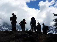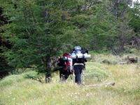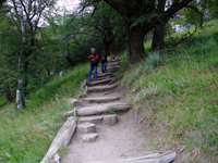 登山口は、目的地によって違う。 11:35にフィッツ・ロイ登山口(真ん中の写真)をスタート。最初は急な上り坂でした。こんな傾斜が続くのか・・・。Mちゃんはどんどん進んで行く。暑くなってきたので、上着を脱ぐために、30分もしないのに、休憩した。半袖にフリースでちょうどいいくらい。「Mちゃん、運動していなさそうなのに、すごく歩くね」と言うと、「結構厳しい」と漏らしたので、なぜか安心した。