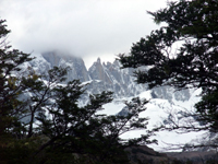 ↓なんか、冬山みたい。カプリ湖の手前はキャンプ場になっていて、荷物を運ぶ用?のリャマがいた。そして、13:10にカプリ湖に着いた。ここからのフィッツ・ロイの眺めが良かった。ここで、ランチにした。次のポイントのリオ・ブランコキャンプ場まで行きたかったけど、却下された(泣)。
