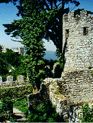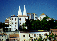 シントラの駅前のバス停から3分ほどで、旧市街に着く。いったんバスを降りるが、ペーナ宮殿の昼休みの時間のことを考えて、先にムーアの城跡を見ることにする。バス停で降りると、回転扉がある。ここを突き進んでいく。山道を歩いていくと、廃虚となった城跡が目に入った。塔に上がれば、下の方にシントラの旧市街が見える。7〜8世紀によくあんな高いところに石の建物をつくったものだ。帰りは駐車場のPのマークを目印に降りてくれば、良い。結局1時間ぐらい歩き回った。