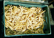にわとりは、けっこう買う人がいて、きれいな格好をしたご婦人が籠に入っているにわとりの足をもって、丈夫かどうかチェックを入れている。両足を広げられ、肛門チェック!食われる前の最後の辱めを受ける。や〜ん、かわいそう。両足を縛られたにわとりは、小さな空気穴をあけた段ボールに入れられ、持ち去られた。