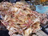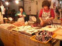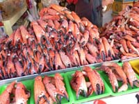 高雄駅のバス停からバスに乗った。12元だったが、小銭がなく探していると、おばちゃんが両替してくれた。鼓山輪渡まで行き、船に乗り、10分ほどで旗津半島到着。ここは、乗る前に料金箱に10元入れるシステムだった。船着き場近くの魚市場に行った。魚だけでなく、野菜や肉なども売っているので、普通の市場という感じだった。目を引き付けたのは、鳥の丸焼き。本当に姿かたちを残したまま。