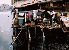 バラック的な家屋、川は耐え難い異臭を放っている。