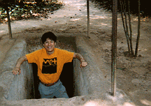 戦争当時、戦闘は南北ベトナムの境界線上でのみ行われたわけではなく、南ベトナム領内に潜む北側ゲリラが幾度となくサイゴンに攻撃をかけた。アメリカ大使館が爆破されたこともあり、2番目の写真のアメリカ大使館は爆破後に作られたものである。そのような北側ゲリラが潜んでいたトンネルのひとつがこれ。